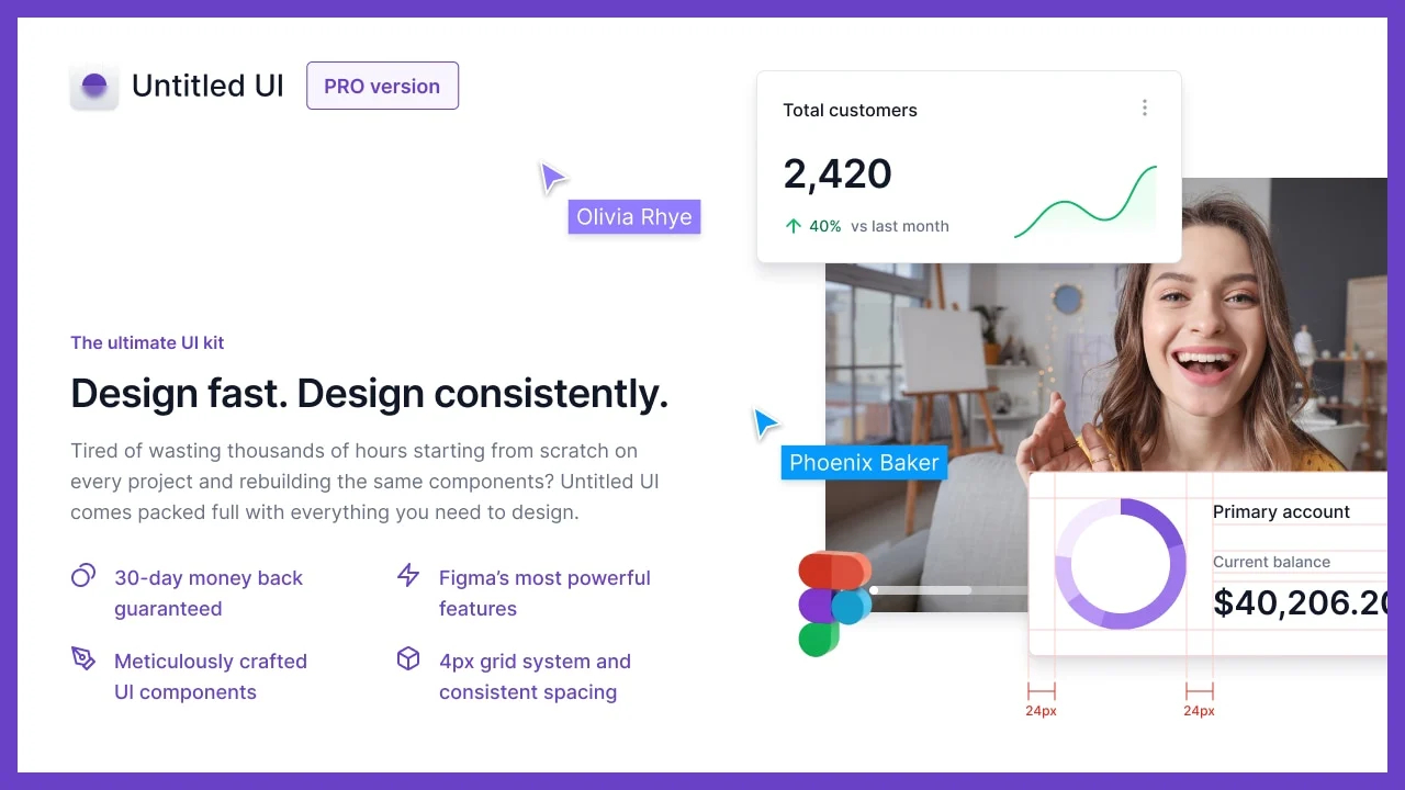 Untitled UI is probably the largest Figma UI kit ever created and it will help you complete design projects 10 times faster than before. You can create any kind of page or interface by re-using the near-infinite amount of components included in this product.